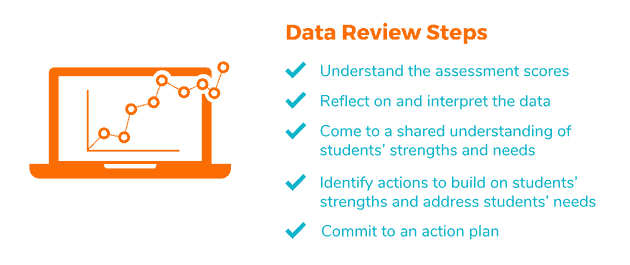 The case study describes the data review steps our colleagues in District 35 use to review their SEL assessment data. During data review sessions at each school, staff engages with each other and their assessment data. They seek to understand the assessment scores, reflect on and interpret the data, come to a shared understanding of students’ strengths and needs, identify actions